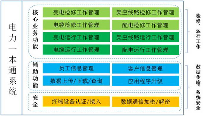系統(tǒng)主要由終端設(shè)備管理,數(shù)據(jù)傳輸,檢修業(yè)務(wù)實施管理,運行業(yè)務(wù)實施管理以及安全防護(hù)管理等業(yè)務(wù)構(gòu)成。